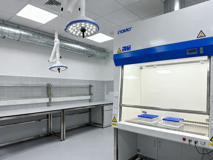 本生化研究實驗室凈化工程嚴格遵循ISO7級潔凈標準,將實驗空間科學劃分為四大核心功能區域:樣品前處理區配備通風櫥、震蕩儀等預處理設備,采用負壓設計防止交叉污染;試劑配制區設有獨立的天平室與超純水系統,通過溫濕度智能調控系統將環境參數穩定控制在±1℃與45%-60%RH;精密檢測區配置防震臺與電磁屏蔽裝置,可滿足高效液相色譜、質譜儀等精密儀器的運行需求;無菌操作區配備層流凈化工作臺與生物安全柜,配合動態浮游菌監測系統,確保實驗環境達到百級潔凈度標準。各功能區通過氣密式緩沖間與機械互鎖傳遞窗形成物理隔離,構建起三級防護屏障。在保障蛋白質分離純化、核酸提取擴增等常規實驗高效開展的同時,還專門設計了酶活性檢測專用恒溫恒濕實驗室,采用獨立的凈化空調系統與UPS不間斷電源,可支持對環境參數高度敏感的高精度研究項目。此外,工程特別設置雙通道應急處理系統,包含緊急洗眼裝置、消防噴淋系統與防化物資儲備間,配合逃生路線熒光標識與應急照明系統,全方位保障實驗人員安全與科研數據完整。?