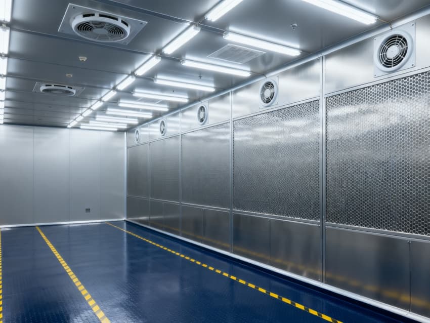 車間的干凈程度達到萬級標準(相當于國際標準ISO8級),每立方米空氣里,直徑0.5微米以上的灰塵顆粒不會超過352000個。我們用初效、中效、高效三層過濾網過濾空氣,再搭配頂部送風、底部回風的設計,每小時能把車間空氣換新20到25次。墻面用的是不容易吸附灰塵、能抗靜電的彩鋼板,地面鋪著耐磨的環(huán)氧樹脂材料,所有拼接的地方都做了密封。車間里的溫度一直保持在21℃到25℃之間,濕度控制在40%到50%,還專門安裝了防靜電設備,這樣就能防止灰塵和靜電影響新能源產品的質量,讓生產出來的東西更可靠。