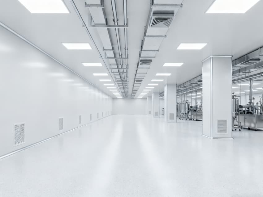 內部6個核心生產車間均為無設備空曠布局,按萬級潔凈標準打造:地面鋪設無縫環(huán)氧自流平,墻面采用食品級不銹鋼墻板,陰陽角做圓弧處理,杜絕積塵死角;空間柱網間距均勻,預留充足設備安裝點位與運維通道,滿足后續(xù)柔性生產需求;頂部吊頂整合新風系統(tǒng)與防眩光照明模塊,風口布局對稱規(guī)整,進一步強化空間的空曠感與規(guī)整性,為生物制藥生產的潔凈性、安全性與可擴展性奠定堅實基礎。