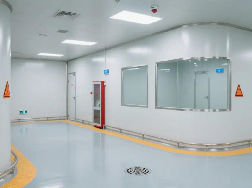 整個車間以白色為主色調(diào),營造出干凈、整潔的氛圍。地面是光滑的淺灰色,帶有黃色的警示線,確保人員行走安全。車間內(nèi)的墻壁和天花板都采用了平整的設計,便于清潔。