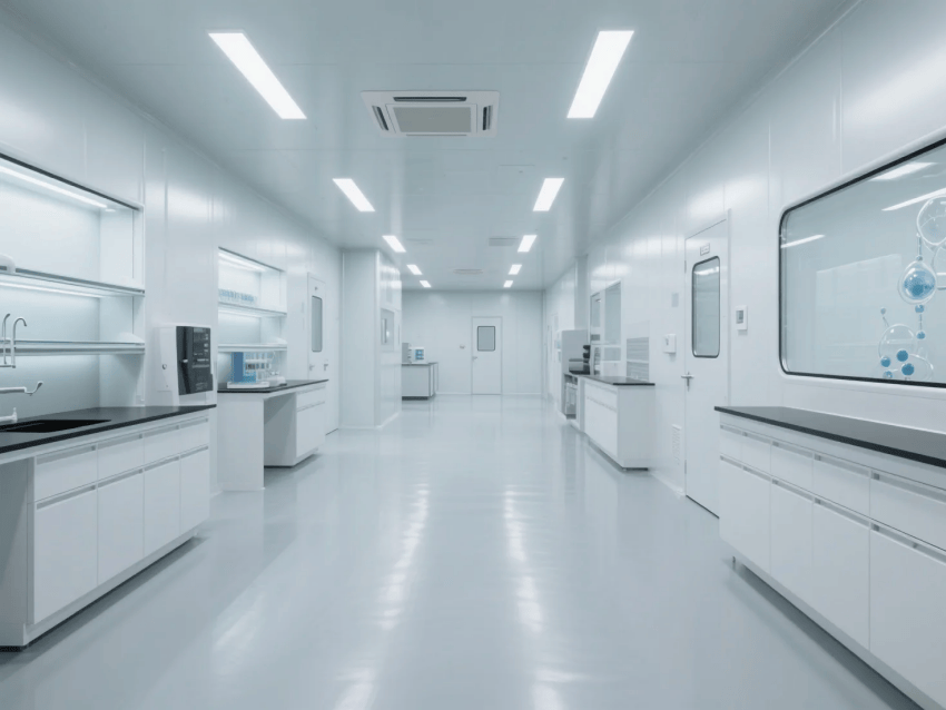 本實(shí)驗(yàn)室嚴(yán)格遵循《生物安全實(shí)驗(yàn)室建筑技術(shù)規(guī)范》GB50346標(biāo)準(zhǔn),以"科技純凈"為設(shè)計(jì)理念,通過象牙白彩鋼板墻體與淺灰環(huán)氧樹脂地坪的極簡組合,打造符合P2防護(hù)要求的現(xiàn)代化研發(fā)空間。
